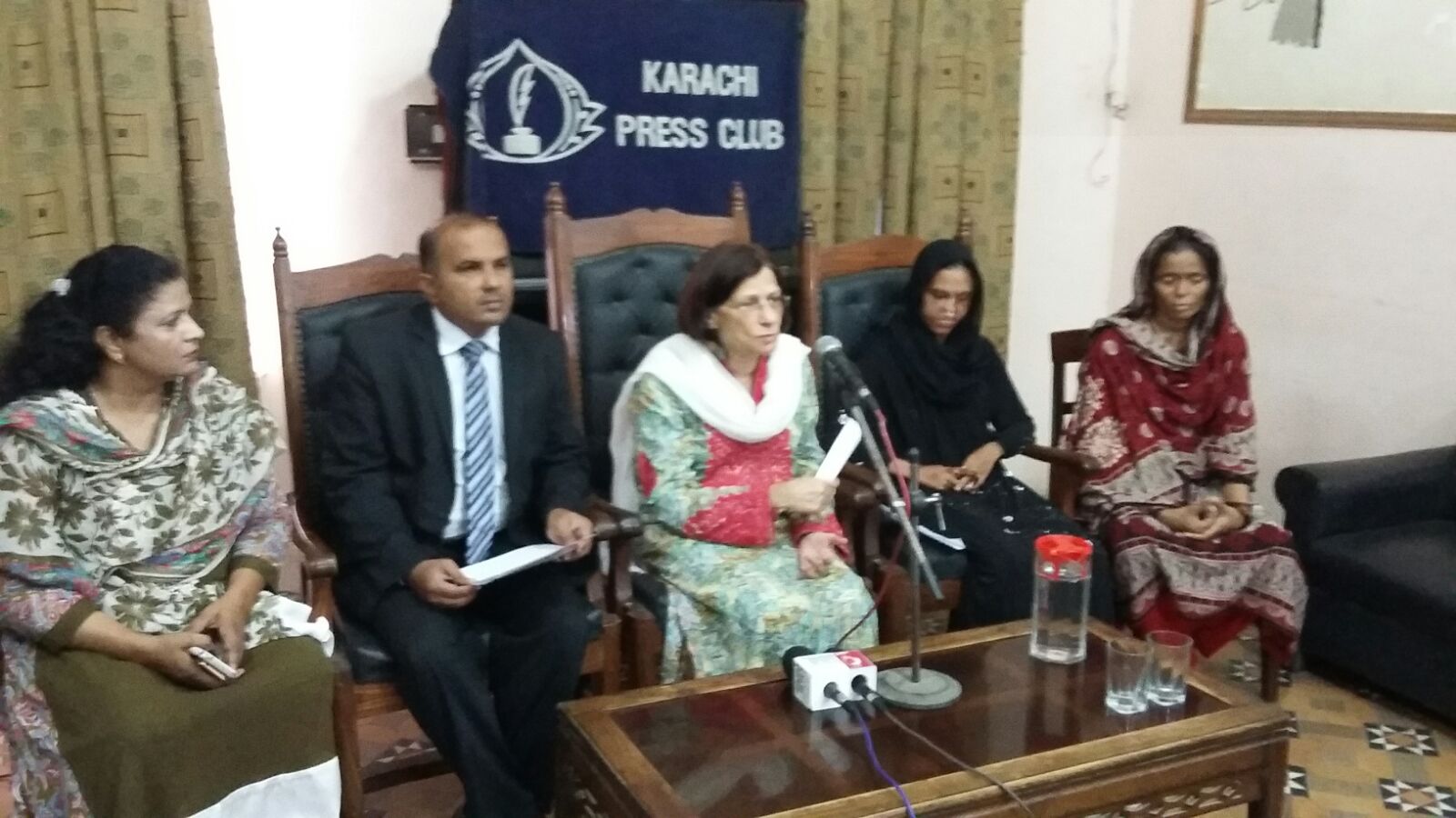 Aurat Foundation and Dastgir Legal Aid Center along with two acid victims and their families held a press conference, on August 25, 2015, Karachi,
