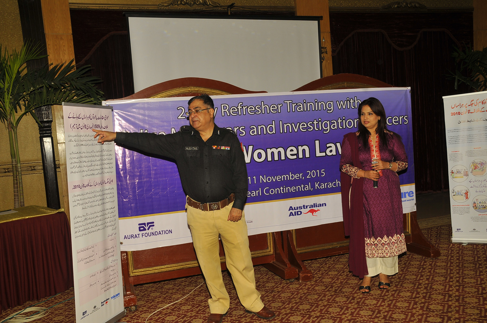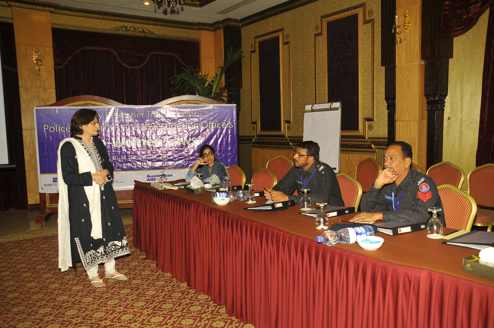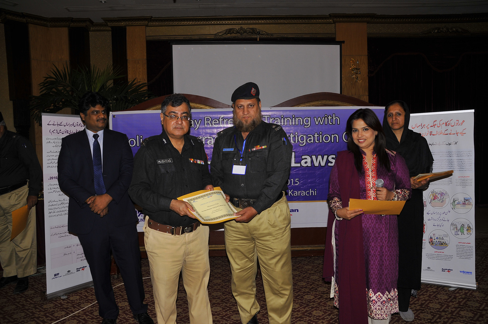 Aurat Foundation started a police training workshop programme a year ago to discuss the new pro-women laws such as Child Marriage Act, Domestic Violence Act and Anti-Women practices Act to ensure the security and protection of women. This year again, on 10-11 November, 2015, at Hotel PC-Karachi, trained police officers met after 6 months under a 2-Days ‘Refresher Training with Police Moharrars and Investigation Officers’ to consider the implementation of the laws and the number of cases submitted under the newly passed Acts. The workshop commenced with a detailed discussion on human rights and its importance by Ms Mahnaz Reham, Resident Director Aurat Foundation. This followed with an informative session by Mr Iqbal Ahmed Detho, Advocate and Trainer, whereby the constitution of Pakistan together with the police rules under PPC were discussed in detail. Mr Detho defined the role and duties of the police under Article (3), Article (4), Article 25(2) and Article (34) of the constitution together with the PPC laws. He also briefed the participants regarding the introduction of a new subject of 'Human Rights' under police training. Ms Shireen Aijaz, Regional Coordinator, coordinated the session forward and discussed the key issue of FIR issuance in regard to women victims. Mr Faizullah Korejo, SSP Sindh Police South, further shed light on the same topic in regard to PPC laws and discussed the implementation of these. The 2nd day of the training specifically discussed pro-women laws together with Hudood and Family laws. This was followed by a Certificate Distribution Ceremony by Mr Mushtaq Mahar, CCPO Sindh Police. Mr Mahar also conducted a brief session on importance of FIR issuance and the role of police in regard to women protection directly and indirectly. Women are a crucial part of the society and thereby , they deserve justice.
