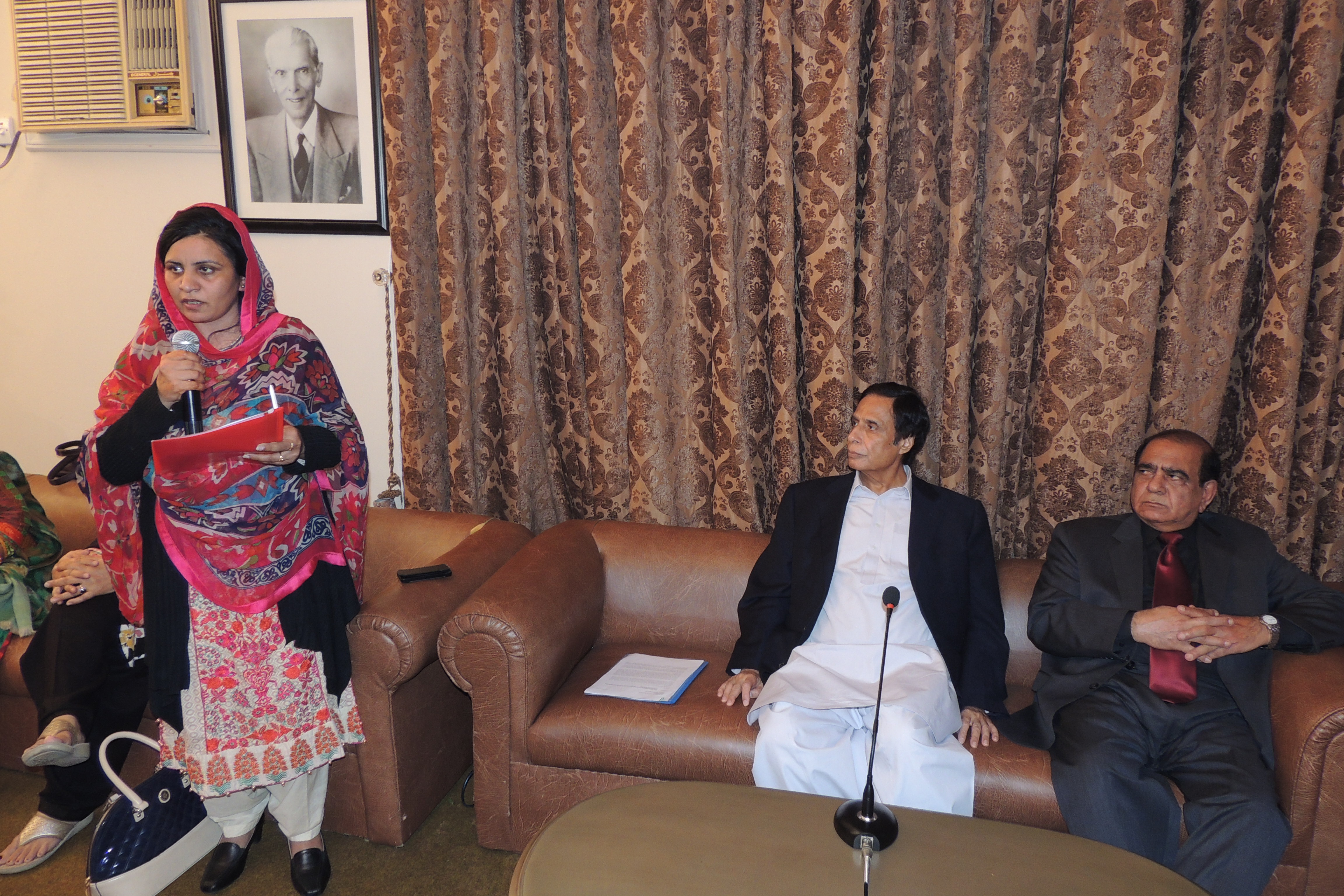 A meeting of AAWAZ Provincial Forum (APF) Punjab was organized with Ch. Pervaiz Elahi, senior central leader Pakistan Muslim League (Q) and former Deputy Prime Minister, on 1December, 2015, at his resident. The 21 members delegation of AAWAZ Provincial Forum also included representatives of Mumkin & Alliance against Early Child Marriages.