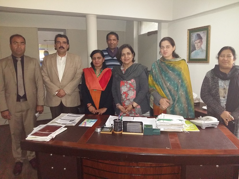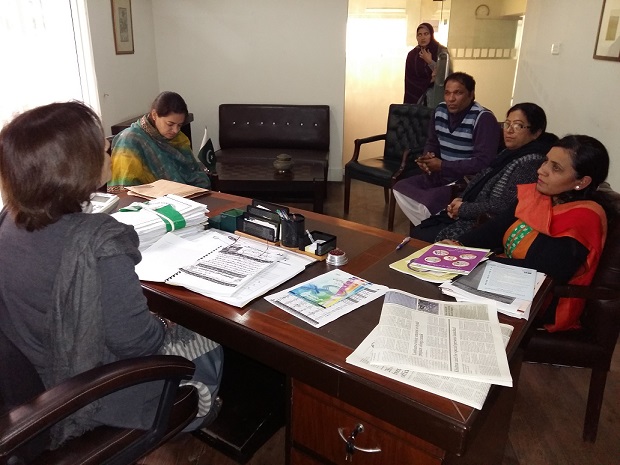 Aurat Foundation arranged a meeting with Ms. Farkhanda Waseem Afzal, Ombudsperson for Punjab Protection against Sexual Harassment of Women at Workplace on 30 December 2015, at her office. The objective of meeting to enhance coordination between AF and Ombudsperson office. AF delegation was consisted of Ms. Mumtaz Mughal, Resident Director AF, Ms. Nabeela Shaheen Advocate, Coordinator Policy Data Monitoring Violence Against Women, Mr. Anjum Rafiq, Coordinator Institutional Strengthening Capacity Strengthening of Women Development Department, and Mr. Anjum Raza, Programme Officer AAWAZ Voice and Accountability Programme.