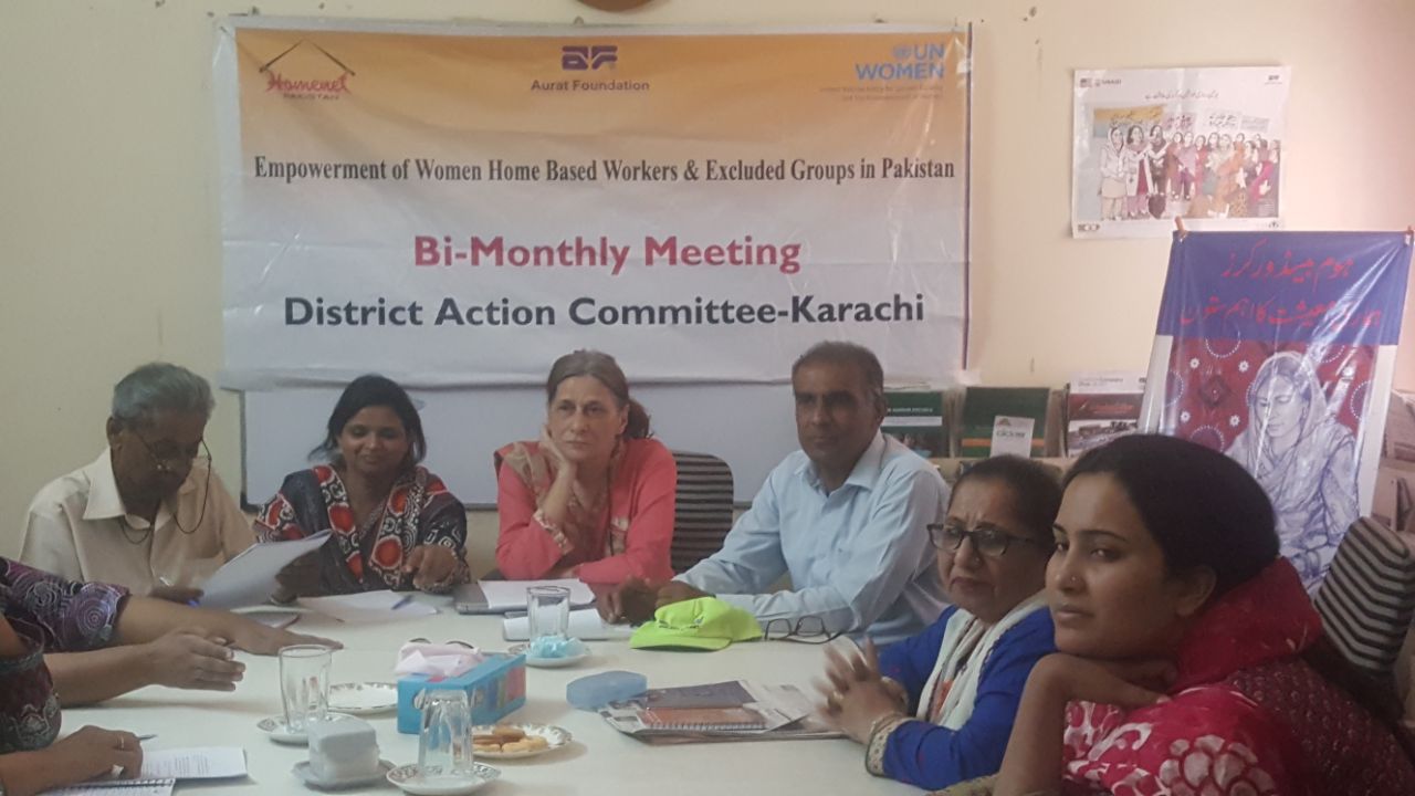 Aurat Foundation has initiated a project titled "Empowerment of Women Home-based workers and excluded groups in Pakistan" in partnership with Home Net Pakistan with the support of UN Women implemented in Karachi and Thatta. Under this project District Action Committees (DAC’s) are formed in these districts. DAC basically is a group of members of different stakeholders at district level, they include home-based workers (HBW’s), organizations working on HBWs, government departments, (Labour Dept, Social Welfare, Women Development, Local Govt, Human Rights) trade unions officials, lawyers, political leaders, NGO’s representatives, disable women, transgenders, and media.