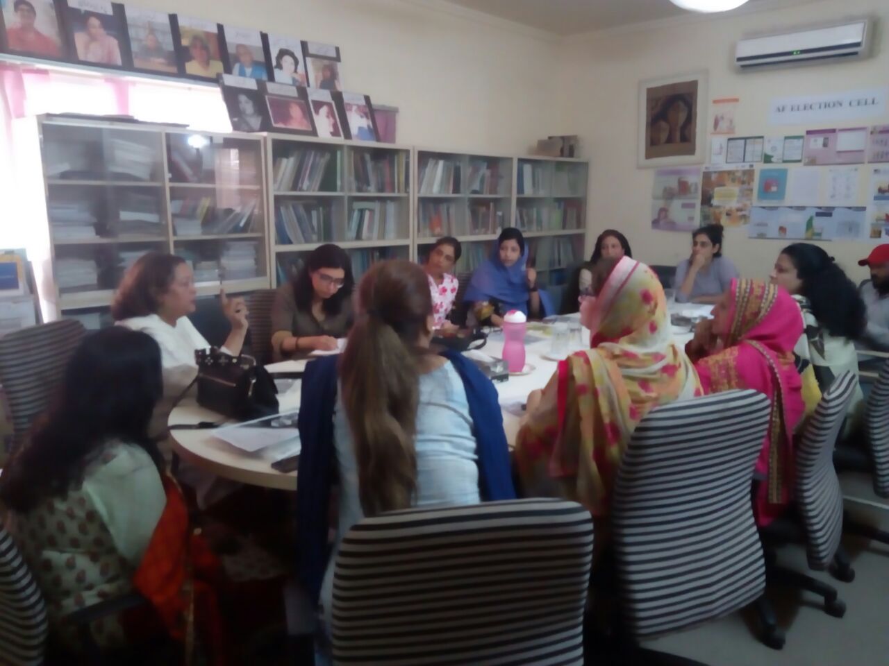 Sindh Commission for Status of Women in collaboration with Aurat Foundation conducted one day election observer training at Aurat Foundation Karachi Office on 23-07-2018, Master trainer Ms. Sadia Shakeel and Ms. Seema Sheikh from Pakistan Press Foundation (PPF) delivered the session according to section 232 of observer in election 2017 Act. The Chairperson SCSW Ms. Nuzhat Shireen along with Civil society representatives participated the workshop. |