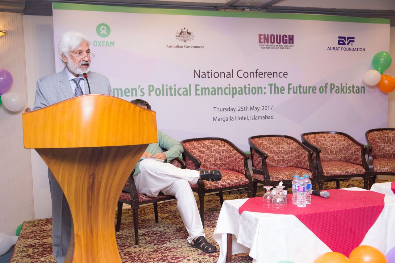 `I was asked to present the historical perspectives of women`s political participation but when I looked at the title of the conference, I read it the other way around the future of Pakistan is in women`s emancipation. The history of the political worker, the women who strove for the right vote, the women who struggled for political freedom predates the history of NGOs, which are new entities, but the political struggle has been going on for decades,` said Naeem Ahmed Mirza, Aurat Foundation`s executive director. He also threw light on feminist movements and urged the women to take advantages of these movements. He called for federal legislation to ensure women also get tickets for winnable general seats. “This will ensure women’s meaningful participation in the electoral process” he said. Mirza also demanded that a special parliamentary committee should be formed to ensure implementation of legislation on domestic violence and sexual harassment.”