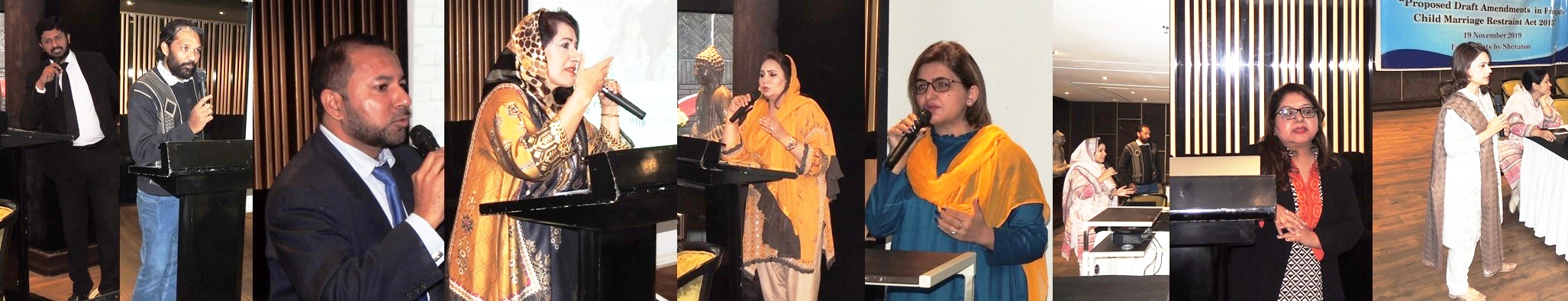 Aurat Foundation in collaboration with Oxfam with the financial support of Global Affairs Canada, organized a consultation in Lahore on 19th November 2019 at Four Points by Sheraton in which a large number of women parliamentarians, government officials and civil society networks and alliances participated. In this consultation, all the participants shared and proposed draft amendment(s) Punjab Child Marriage Restraint (Amendment) Act, 2015, including, increasing the age of a girl to 18 instead of 16. |