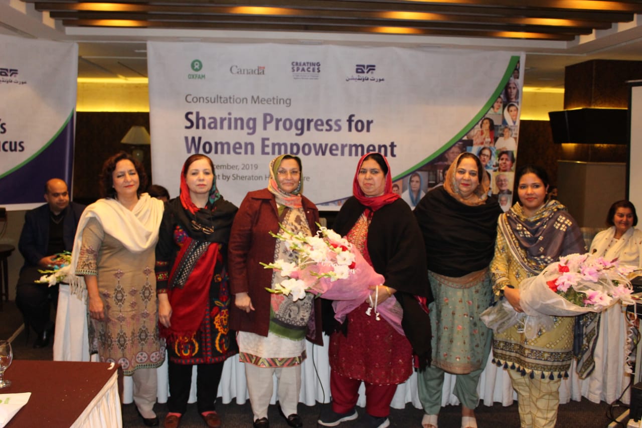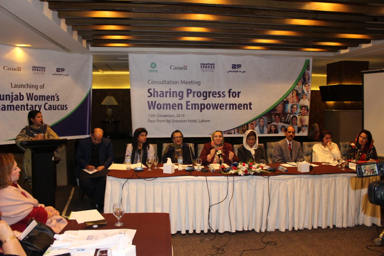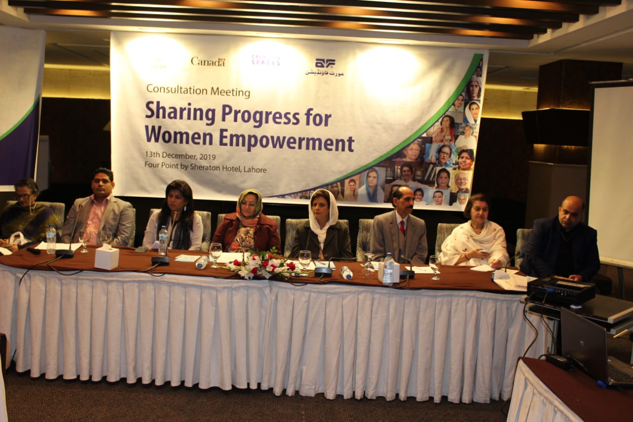 Lahore Consultation Meeting “Sharing Progress for Women Empowerment” Aurat Foundation arranged consultation meeting on Sharing Progress for Women Empowerment" at Four Point by Sheraton hotel, Lahore on 13th December, 2019 where representatives of PCSW, WDD, NCHR, Social Welfare Dept. & women protections Authority, Labor department and Women Parliamentarians shared their progress and initiatives for women empowerment under Creating Spaces Project of Aurat Foundation and Oxfam in Pakistan. Justice (R) Nasira javaid and Ms. Ashifa Riaz Fatyana, Minister for Women Development graced the occasion with their valuable participation.