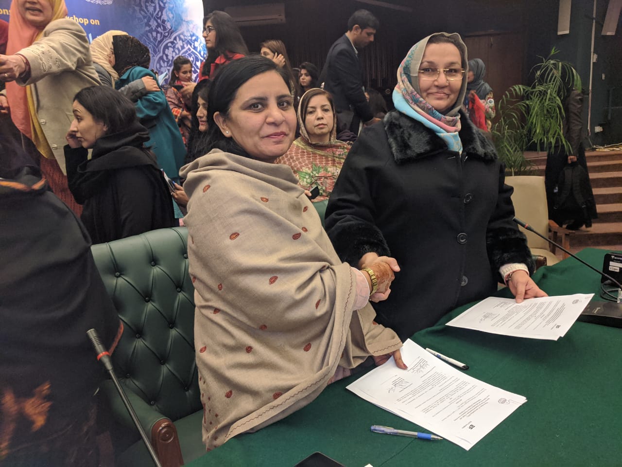 A Memorandum of Understanding (MOU) Between Women Development Department, Punjab and Aurat Foundation, concerning implementation of Dukhtaran-e-Pakistan on 28th January 2020 at International Islamic University, Islamabad. The MoU was signed by Ms. Ashifa Riaz Fatyana, Minster for Women Development Department, Government of Punjab and Ms. Mumtaz Mughal, Director Programmes Aurat Foundation. Special Assistant to Prime Minister Firdous Ashiq Awan, officials of Ministry of Defence, Vice Chancellor of International Islamic University, women leaders, students and civil society activists were present on the occasion.