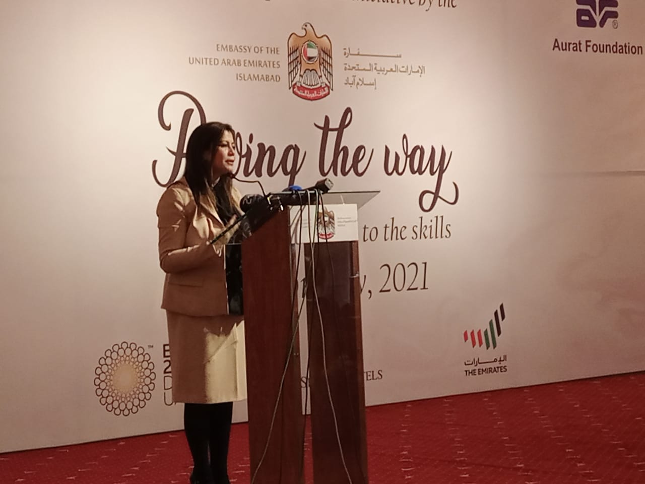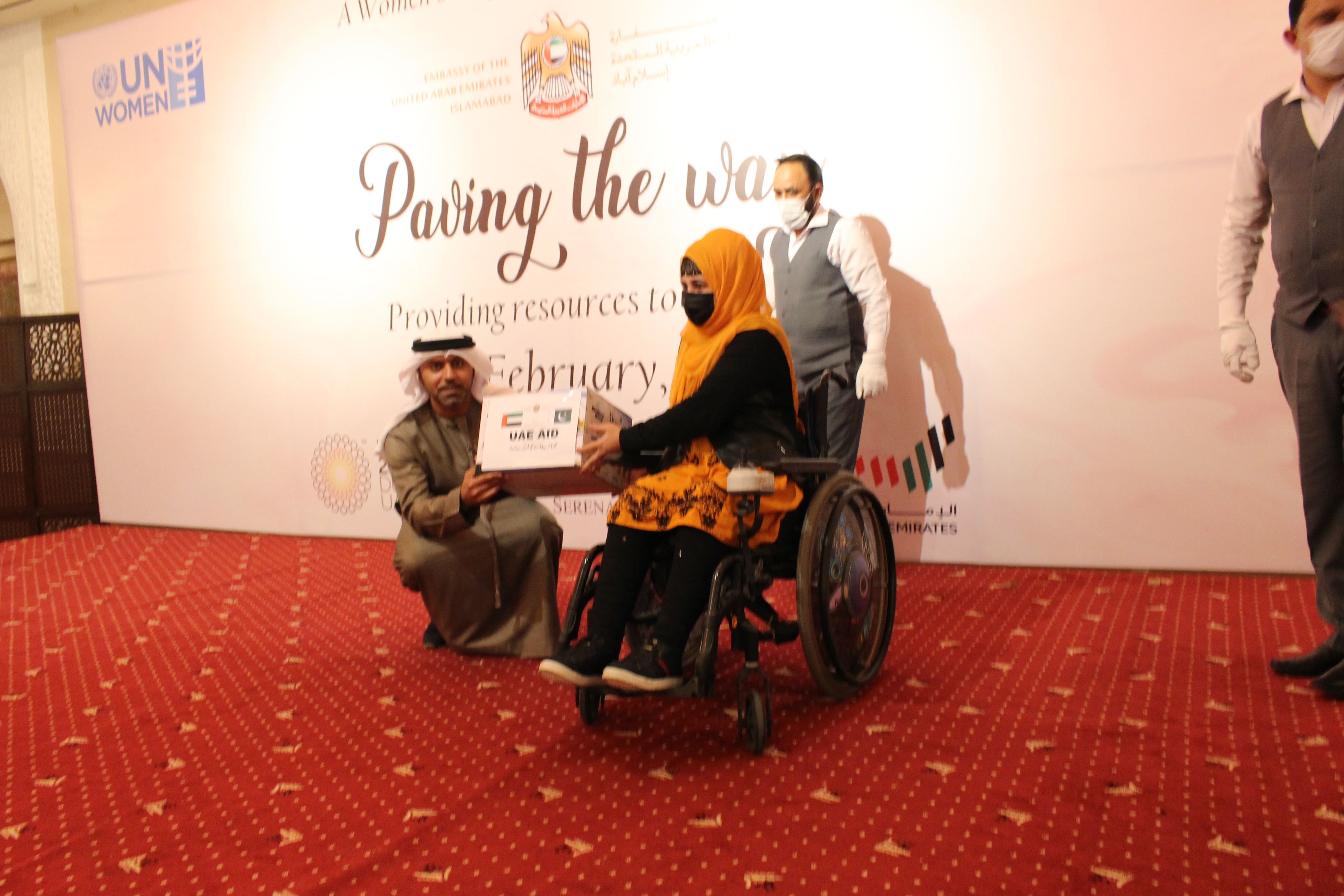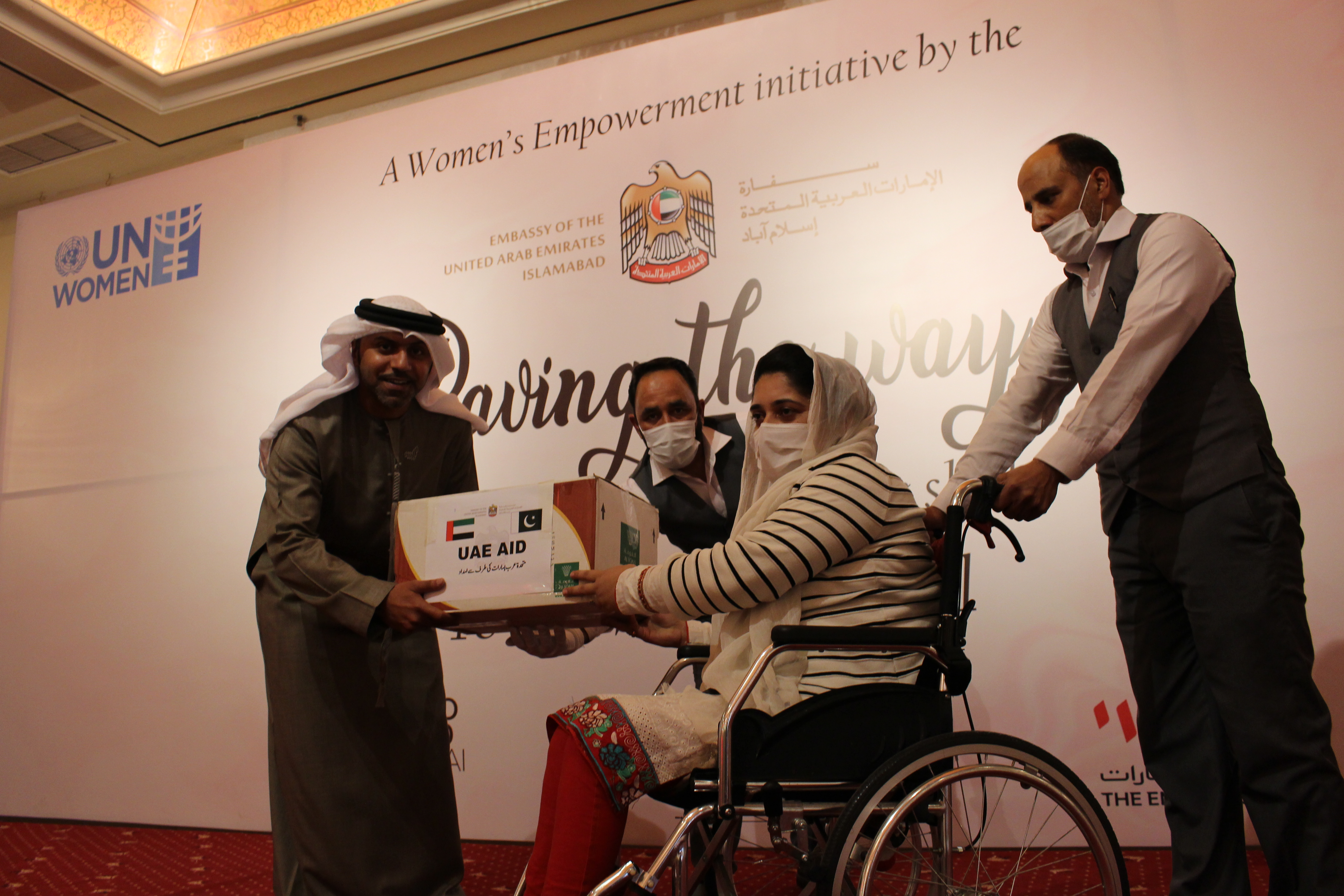 Islamabad Paving the Ways - providing the resources to the skill In the wake of the Covid-19 pandemic, Pakistan's economy has suffered badly. Social distancing, lockdown, and the closure of businesses have had enormous economic consequences for small wage earners. In this regard, The UAE Embassy, in accordance with the UAE's humanitarian and developmental framework, launched the women empowerment initiative under the title "Paving the way" in cooperation with the Aurat Foundation and the UN Women 16th February 2021 at Serena Hotel, Islamabad.