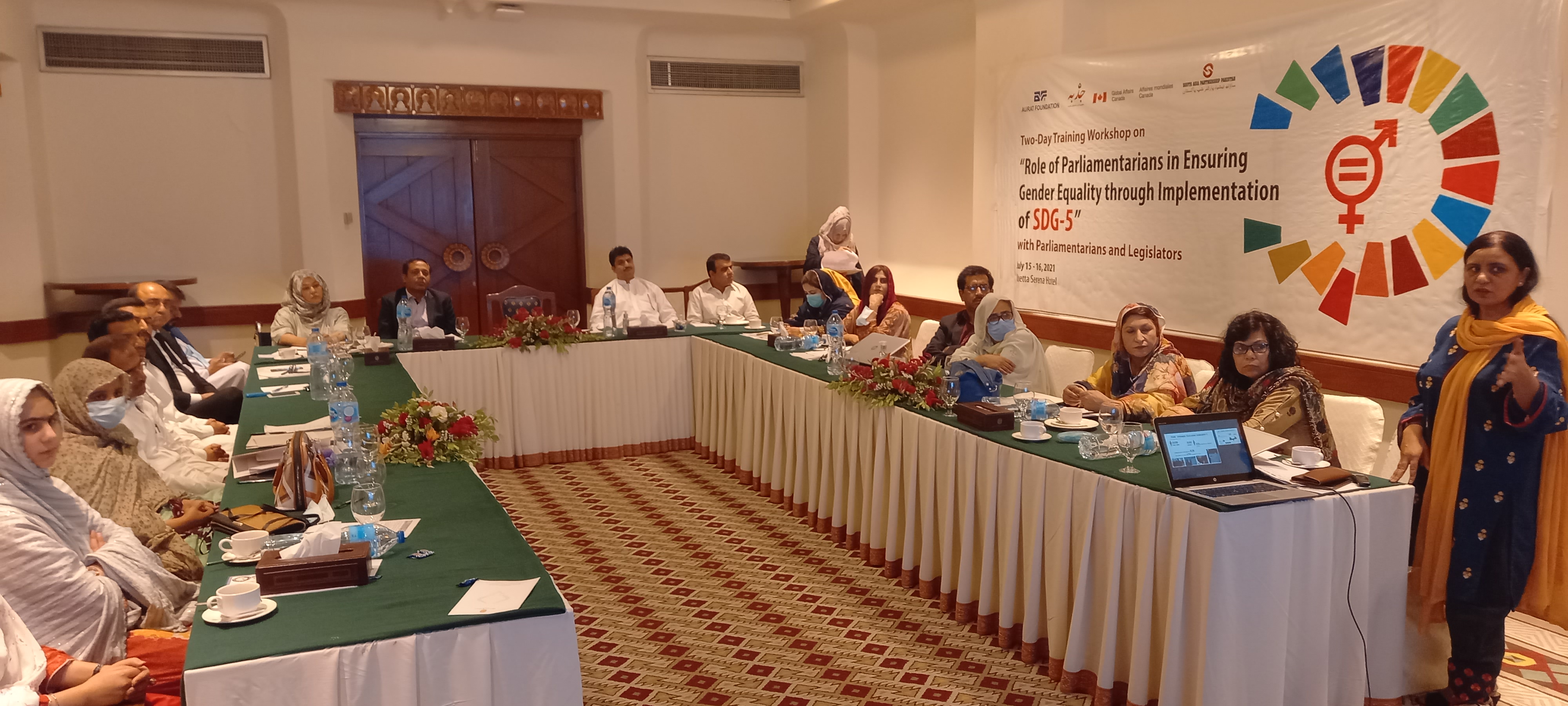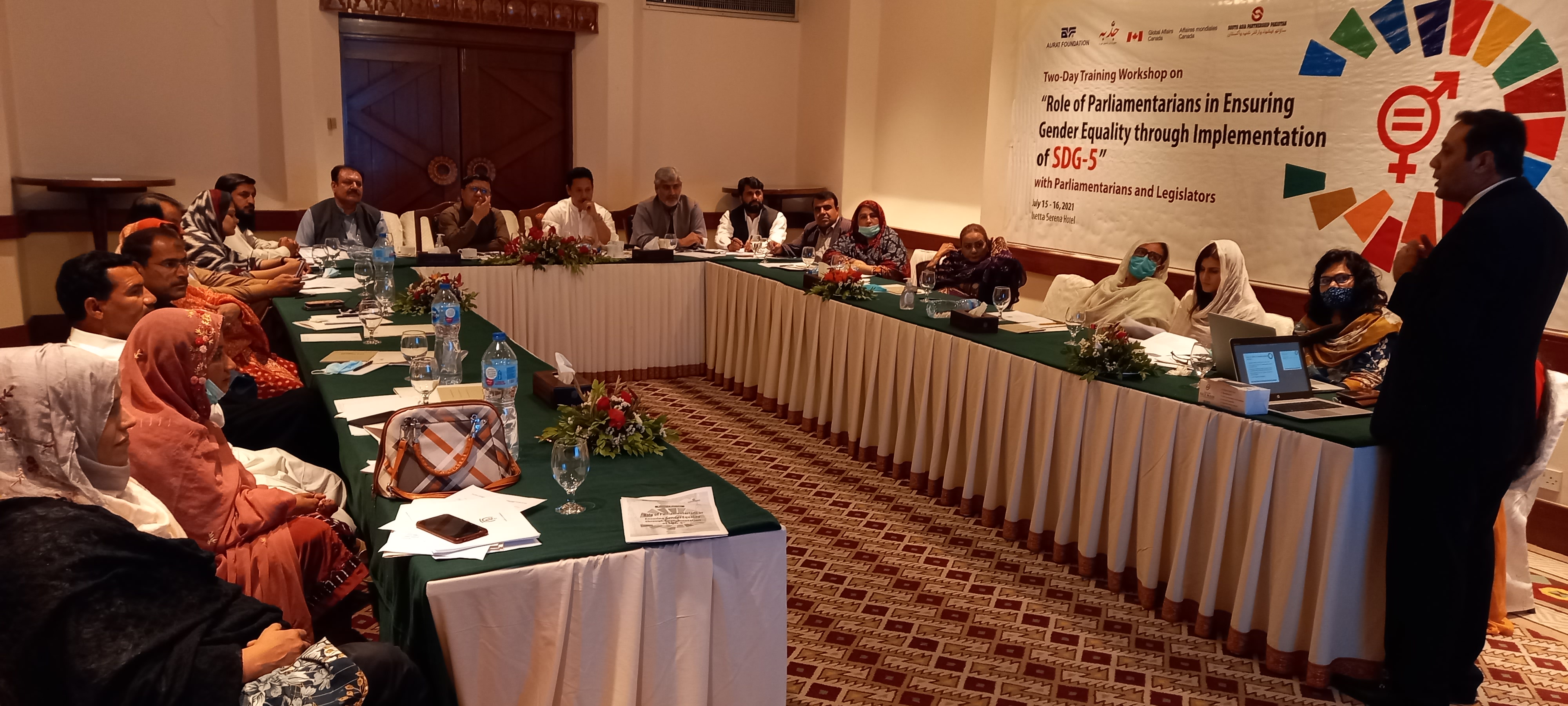 Quetta Two-Days session on Role of Parliamentarians in Ensuring Gender Equality through Implementation of SDG 5 in Balochistan Province, Quetta Aurat Foundation Quetta organized a Two-Days session on Role of Parliamentarians in Ensuring Gender Equality through Implementation of SDG 5 in Balochistan Province, Quetta in collaboration with South Asia Partnership Pakistan with the financial support of Global Affairs Ganada (GAC) on 15th & 16th July, 2021 in Quetta Serena Hotel.