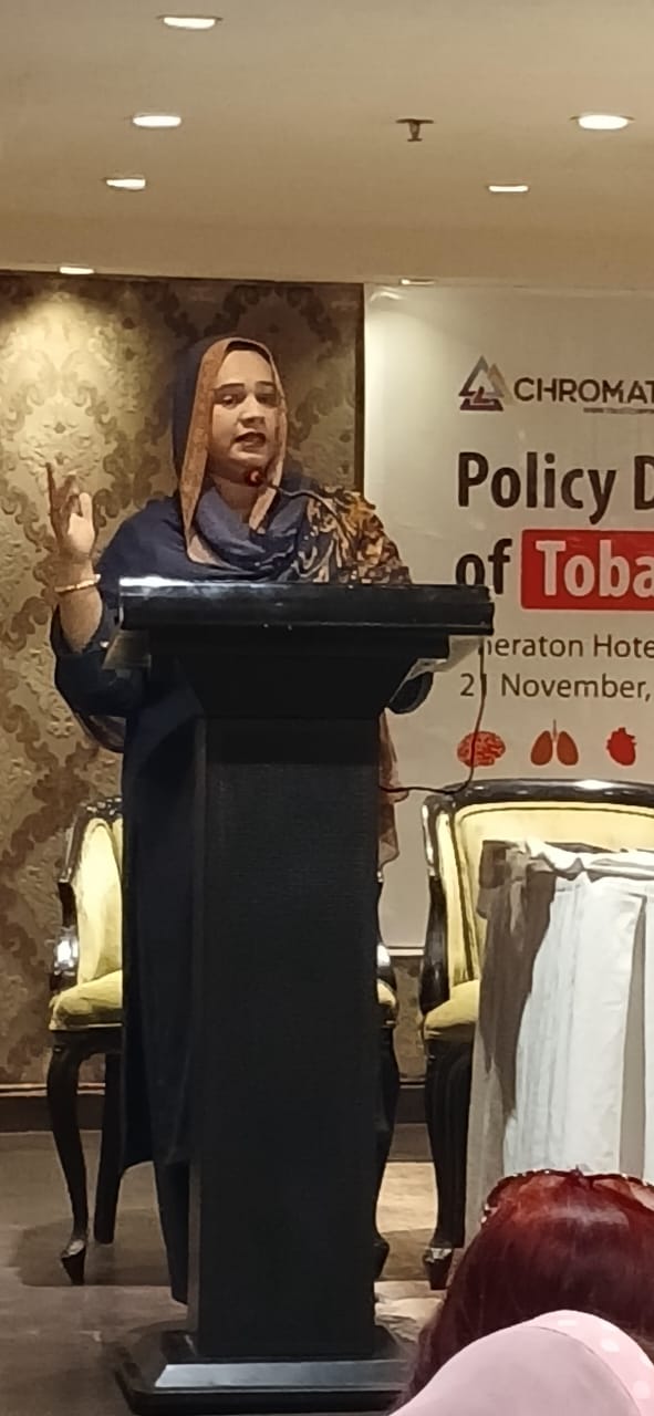 Ms Kanwal Liaqat Adovocate, MPA, and Parliamentary Secretary for Environment Protection Aurthoarity, spoke on impact of tobacco on climate justice and role of parliamentarian and policy makers. |