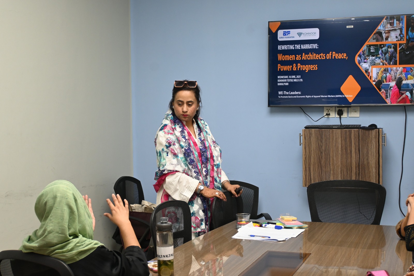 A Training session on "Women as Architect of Peace, Power and Progress" was conducted at Koh I Noor Textile Mills, Rawalpindi. Women took keen interest in training, want to know about Labour Laws, Women Rights and Civil Registration.