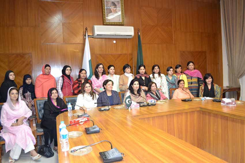 On September 12, 2013, Aurat Foundation Karachi office, facilitated a meeting of Ms Asma Khader, Jordan-based human rights activist and lawyer, Ms Shehla Raza, Deputy Speaker Sindh Assembly, and women parliamentarians including Dr Seema Zaidi, MPA Pakistan Tehrik e Insaf (PTI), Ms Irum Azeem, MPA Muttahida Qaumi Movement (MQM), Ms Ghazala Siyal and Ms Nusrat, MPA Pakistan People’s Party Parliamentarian (PPPP). Ms Anis Haroon, renowned women and human rights activist, former Chairperson National Commission on the Status of Women (NCSW), and former Caretaker Minister for Women Development Department also joined the meeting. Ms Asma Khader is here in Pakistan, invited by Aurat Foundation, as one of the trainers for the 2nd National Training of Trainers (ToT). The meeting was held at the Committee Room of Sindh Assembly.